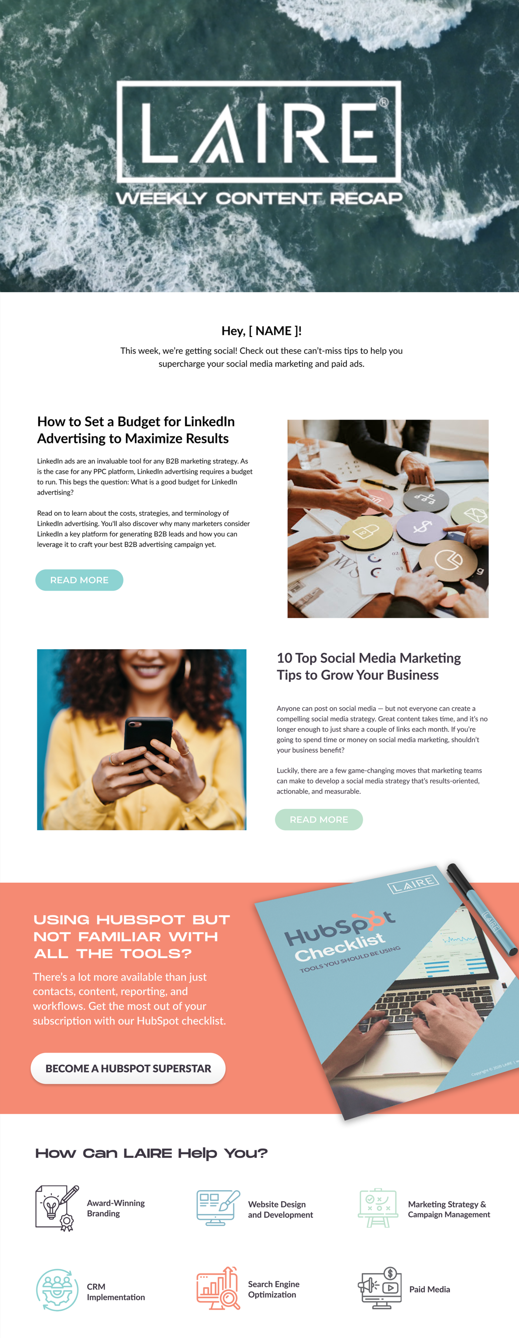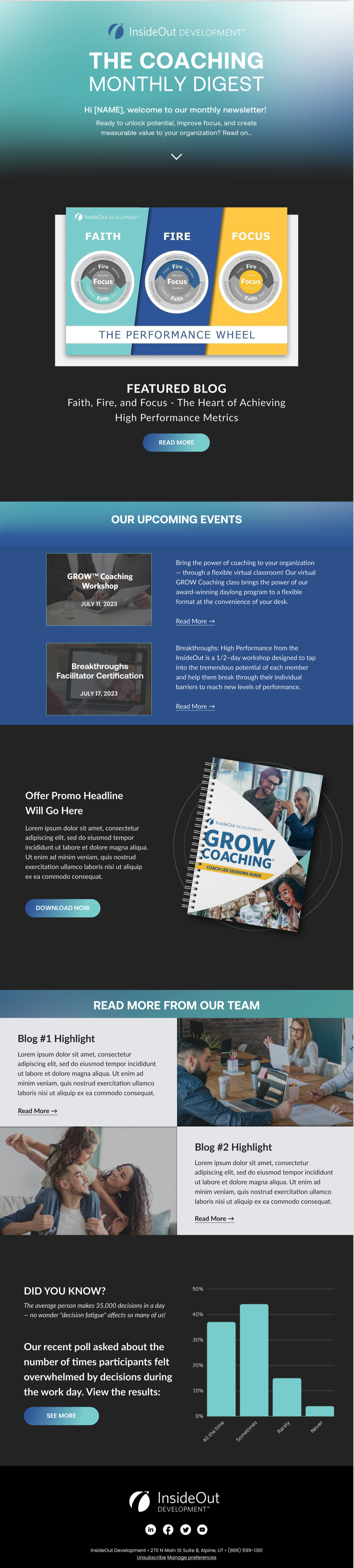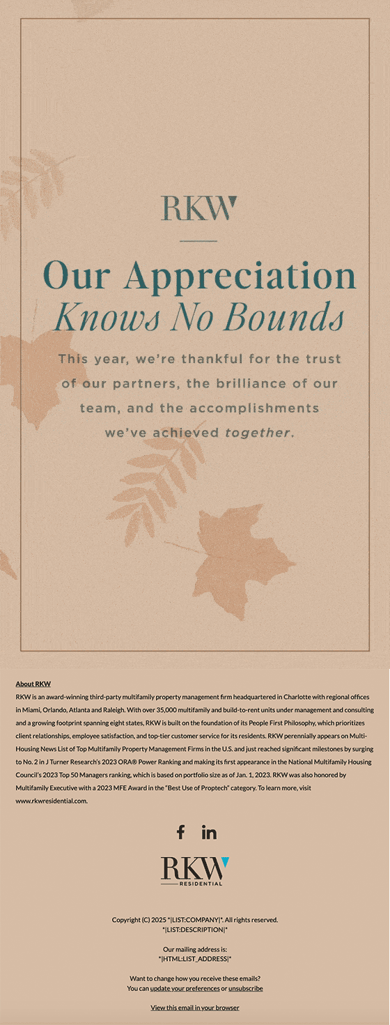 The below email designs were created in Figma and/or Adobe XD, then built in various platforms, such as HubSpot, MailChimp, Pardot, and SharpSpring. Usage included e-newsletters, drip/nurture, trigger, and promotional email campaigns, with design dependent on client preferences and brand. All were custom-coded or piecemeal to ensure responsiveness across all viewing devices, with many including eye-catching motion design and micro-animation interactions.